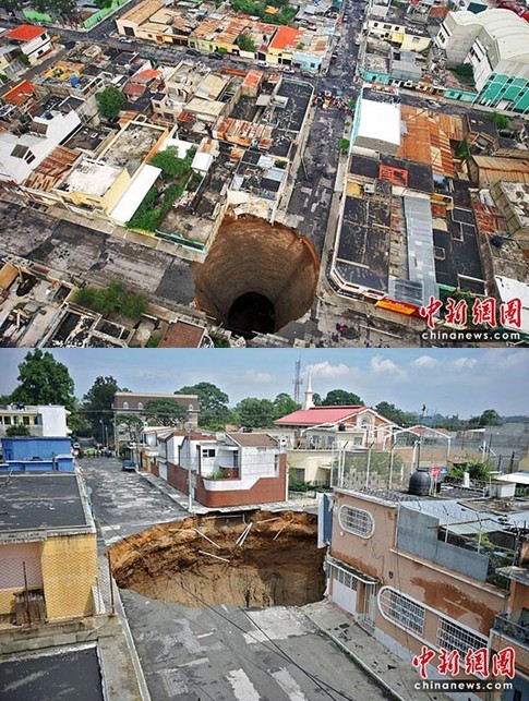 5月31日,熱帶暴風(fēng)雨“阿加莎”在危地馬拉首都危地馬拉城市區(qū)路面造成一個(gè)深60米、直徑30米的巨洞。專家認(rèn)為,填洞并非根本解決之道,如果不改善地下的管線埋設(shè)問(wèn)題,類似巨洞可能將再出現(xiàn)。