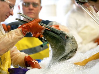 報(bào)道稱,清洗過程無論對(duì)鳥還是對(duì)志愿者來說都無比艱辛。因?yàn)閭}庫內(nèi)的高溫和他們身上沉重的防毒護(hù)具,每位志愿者一次只能在里面工作20分鐘,就必須要出去休息。期間還有志愿者暈倒的現(xiàn)象。他們身上的防毒護(hù)具是為了避免石油中的有毒物質(zhì)直接粘到皮膚。