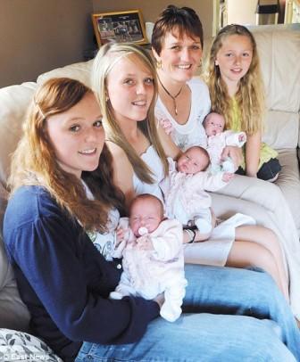 中新網(wǎng)5月14日電 據(jù)英國媒體13日報道,英國媽媽戴爾在生了一對雙胞胎女兒,以及另外一女后,最近又誕下三胞胎女兒。而更少有的是,戴爾誕下的三胞胎來自兩個卵子。這一家猶如中大獎,因?yàn)檫@樣的生育幾率,百萬家庭中才有一個。