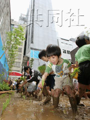 中新網(wǎng)5月30日電 高級品牌店羅列的東京銀座一丁目日前出現(xiàn)了水田!霸阢y座種大米2009”活動30日正式拉開帷幕。