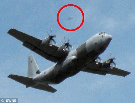 報道稱,當?shù)貢r間7月22日下午3時45分,56歲的鮑威爾在其位于威斯柏立(Westbury)的住家院子內(nèi)干活兒時,無意中發(fā)現(xiàn)天空有一球形的神秘飛行物體一直尾隨著準備著陸的皇家空軍“大力士”號軍機。機警的他于是沖入屋內(nèi)抓起相機便往院子跑,然后很快攝下了這一幕。