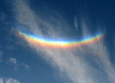 專家解釋,一般彩虹的出現(xiàn),是光線穿透雨點(diǎn)后折射到另一處時(shí)所產(chǎn)生的現(xiàn)象。但這朵天空中的“微笑”是日光穿透卷云或?qū)釉浦械臄?shù)百萬顆細(xì)微冰晶粒子時(shí)形成。