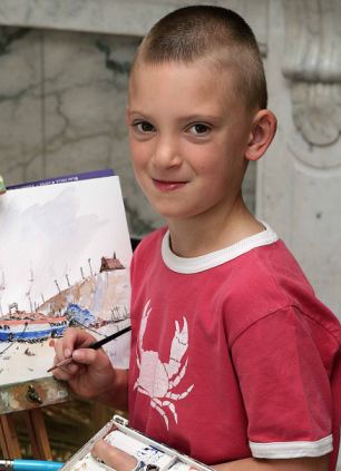 據(jù)悉,這位名叫基隆•威廉姆森(Kieron Williamson)的男童居住在英國東部小城霍爾特,他有著令其他畫家傾羨的藝術(shù)才華和繪畫技巧。當(dāng)?shù)厝税阉彤吋铀飨啾龋笳哂啄瓿刹挪⒊蔀?0世紀(jì)最受矚目的畫家。