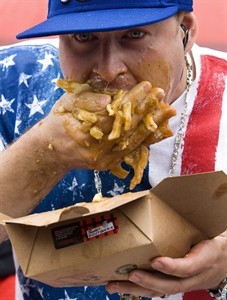 中新網(wǎng)5月24日電 據(jù)香港《星島日?qǐng)?bào)》報(bào)道,來(lái)自芝加哥的帕圖奈堤在10分鐘內(nèi)吞下13磅拌有醬汁及芝士的薯?xiàng)l,于周六成為世界食薯?xiàng)l冠軍。
