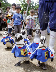 中新網(wǎng)6月11日電 據(jù)日本共同社網(wǎng)站報道,11日,身穿南非世界杯日本隊(duì)服的企鵝們出現(xiàn)在日本島根縣松江市的“松江 Vogel Park”公園,為出征世界杯的日本選手“吶喊助威”。