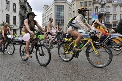 據(jù)報(bào)道,大約50名沒(méi)穿褲子、赤身裸體的比利時(shí)人在首都布魯塞爾市組成隊(duì)伍,騎著自行車(chē)游行。雖然當(dāng)天風(fēng)雨交加,“勇士”們的熱情卻沒(méi)有輕易被澆滅。