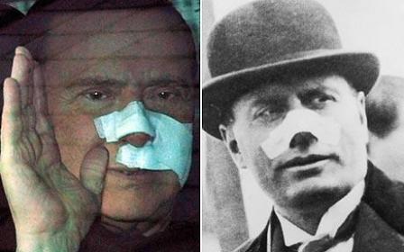 中新網(wǎng)12月21日電 綜合媒體21日報道,近日意大利總理貝盧斯科尼遇襲險遭“毀容”,他出院時鼻子包裹紗布的形象,讓人聯(lián)想到二戰(zhàn)時意大利的法西斯獨(dú)裁者墨索里尼。