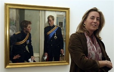 在畫家的幫助下,現(xiàn)實中威廉王子日益稀疏的頭發(fā)被濃密金黃的頭發(fā)所取代,而哈里王子的肖像卻是在一次橄欖球比賽中鼻子被打破后的真實寫照。