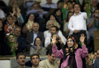 隨著大選如火如荼地開(kāi)展,一位伊朗女性逐漸被大家所熟悉,甚至被西方媒體稱(chēng)為“伊朗政壇上的新星”,她就是扎哈拉·拉赫納娃德——穆薩維的妻子。自丈夫參選后,穆薩維夫婦總是形影不離地出現(xiàn),拉赫納娃德甚至多次單獨(dú)代表穆薩維參加集會(huì),F(xiàn)年64歲的她擁有博士后學(xué)歷,曾經(jīng)是阿爾扎哈拉女子大學(xué)的校長(zhǎng),也曾擔(dān)任前總統(tǒng)哈塔米的顧問(wèn),可謂穆薩維的“得力干將”。