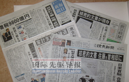 此次“備忘錄”文件直接證實(shí)了“沖繩核密約”的存在,這在很大程度上也提高了其他3個密約存在的可能性。因此,“備忘錄”一出現(xiàn),頓時成為日本媒體關(guān)注的焦點(diǎn)。繼《讀賣新聞》拔得頭籌之后,23日的日本各大報紙頭版,都對密約問題進(jìn)行了大篇幅的跟蹤報道。 自民黨執(zhí)政時,對上述密約的存在一概予以否認(rèn)。民主黨上臺后,新外相岡田克也已經(jīng)組織了專門的調(diào)查項(xiàng)目,在外務(wù)省檔案中查證是否存在密約。但是,之前關(guān)于“沖繩核密約”的調(diào)查結(jié)果是:“外務(wù)省沒有保存這份文件。”對此,日本《每日新聞》的解讀是:當(dāng)時圍繞密約的外交行動并沒有通過外務(wù)省當(dāng)局,而是委托國際政治學(xué)者、京都產(chǎn)業(yè)大學(xué)教授若泉敬個人交涉的。因此外務(wù)省沒有記錄亦屬正常。而佐藤信二也透露,在當(dāng)年發(fā)現(xiàn)密約之后,他曾經(jīng)找到外務(wù)省的一些官僚,希望這一文件能夠由外務(wù)省外交史料館保存,但對方卻說:“這不是官方文件,而是個人文件!
