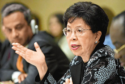 據(jù)香港《文匯報(bào)》報(bào)道,陳馮富珍在日內(nèi)瓦的世衛(wèi)年會(huì)上說(shuō):“當(dāng)我看見(jiàn)更多來(lái)自病毒本身和疾病蔓延的跡象,我必然會(huì)作出一個(gè)困難的決定,不會(huì)危及全球人的健康!