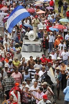 本周一,塞拉亞意圖回國復職,大批支持者前往機場迎接和阻擋的軍警爆發(fā)沖突,19歲的青年曼西亞被軍人射殺,在曼西亞家屬的請求下,藏匿了十天的卡絲特蘿決定出面。