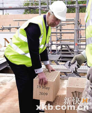 開始的時候,王儲興致勃勃,他拒絕了現(xiàn)場施工經(jīng)理提供的防護手套。戴上安全帽、穿好防護馬甲后,查爾斯開始搬運蜂窩狀磚塊,修建圍墻。