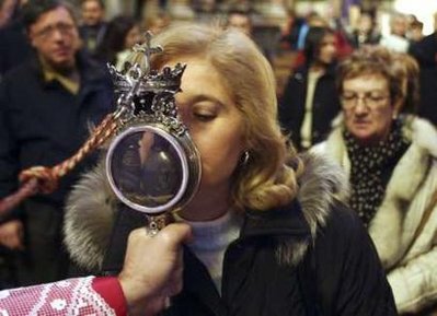 上周,一名51歲的男子因感染甲流,在那不勒斯醫(yī)院不治身亡,成為意大利第一例甲流致死病例。由此,周一,天主教那不勒斯教會與城市當(dāng)局共同決定,為預(yù)防甲流病毒大規(guī)模傳播,將禁止信徒在本月晚些時(shí)候開始的宗教節(jié)日上親吻裝有圣人血液的玻璃小瓶。從9月19日開始,這樽裝有天主教圣人圣亞努阿里烏斯血液的玻璃瓶將在那不勒斯市的主教座堂展出一周,展覽期間,無論前來膜拜的信徒有多么虔誠,也不能用嘴親吻瓶子,只能用額頭輕觸瓶子。