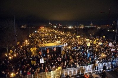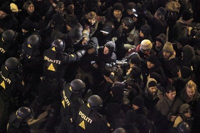 較早前的示威原本和平進(jìn)行,丹麥電視臺估計(jì)示威人數(shù)介乎3萬至10萬人,警方則估計(jì)示威者超過5萬人,在氣候會議會場外的游行人龍長達(dá)6公里。在游行隊(duì)伍出發(fā)前,當(dāng)局表示憂慮會有極端分子策動暴力行為,而主辦單位亦呼吁示威者保持冷靜。