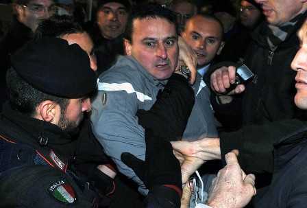 現(xiàn)年42歲的塔爾塔利亞回憶事發(fā)當(dāng)時(shí)的情形道,當(dāng)時(shí)他正打算離開米蘭杜莫廣場(chǎng),突然聽到群眾集會(huì)的呼喊聲,他走過(guò)去看,發(fā)現(xiàn)站在離他不遠(yuǎn)處的就是貝盧斯科尼——他所憎恨的人。他一直認(rèn)為貝盧斯科尼正在“毀掉意大利”,并表示自己“不同意他所說(shuō)的一切”。于是,他血?dú)馍嫌浚幌胗帽M全力擊倒他,也要“做一個(gè)自己的抗議活動(dòng)”。于是,塔爾塔利亞將手中所持米蘭大教堂模型擲向貝盧斯科尼面部,使其受傷流血。其后,塔爾塔利亞當(dāng)場(chǎng)遭警方拘捕。