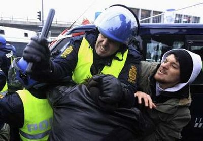 哥本哈根警方發(fā)言人拉森說(shuō),已有260位抗議人士在與警方?jīng)_突時(shí)遭拘捕,他并強(qiáng)調(diào),沒(méi)有人能闖入貝拉會(huì)展中心。