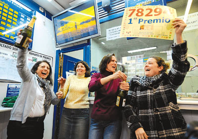 主辦單位表示,有1950張彩票出現(xiàn)中獎(jiǎng)號(hào)碼,全部都是在馬德里巿中心彩票辦事處出售。按總彩金23.2億歐元計(jì)算,每位得獎(jiǎng)持票人可獲30萬歐元獎(jiǎng)金。