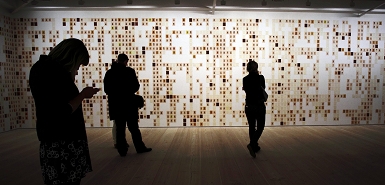 每一列都代表戰(zhàn)爭(zhēng)中每一周死亡的人,參觀者可以通過(guò)這些肖像畫體會(huì)從2001年的10月到2003年3月這短短幾年內(nèi)不斷發(fā)生的沖突、爆炸和殺戮,能夠順著時(shí)間的流淌來(lái)感受一個(gè)個(gè)鮮活生命的流逝。