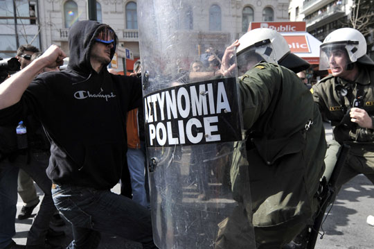 中新網(wǎng)2月25日電 據(jù)香港《大公報(bào)》報(bào)道,希臘警方星期三(24日)在雅典市中心向示威者發(fā)射催淚氣并與示威者發(fā)生沖突。這場(chǎng)釀成暴力的示威,旨在抗議政府為了挽救債務(wù)危機(jī)而采取的緊縮措施。