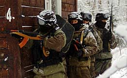 據(jù)報道,一名警方發(fā)言人說,俄羅斯安全部隊在靠近俄印古什共和國臨時首府納茲蘭市的?ㄕ畚(Ekazhevo)村展開清剿行動,包圍了一個當?shù)嘏褋y分子的窩藏地點。叛亂分子拒絕投降,于是安全人員向叛亂分子開火。在激戰(zhàn)當中,安全部隊打死4名叛亂分子。