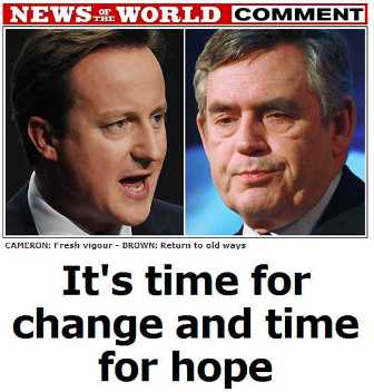 該報(bào)說(shuō),經(jīng)過(guò)深思熟慮,《世界新聞報(bào)》相信卡梅倫和他的保守黨應(yīng)當(dāng)被給予執(zhí)政的機(jī)會(huì),“眼前,他們(保守黨)寄托著我們對(duì)光明、合理、安全和更有榮譽(yù)的未來(lái)!