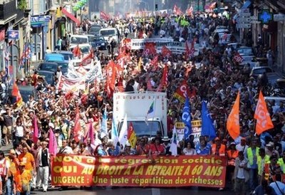 據(jù)新華社電 法國政府上周宣布退休改革草案,擬將法定退休年齡從目前的60歲提高到62歲。24日,法國全國發(fā)生大罷工,數(shù)百萬人走上街頭抗議這一“有損退休福利制度”的改革。