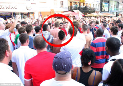 這名德國隊支持者赤裸著上身,誤入英格蘭球迷陣營。他不斷地被人群推搡,還遭到肘臂擊撞。據(jù)悉,英格蘭慘遭淘汰后,類似的騷亂事件還在英國其他街頭和酒吧中發(fā)生。