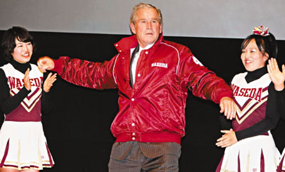 中新網(wǎng)11月5日電 據(jù)美國(guó)媒體報(bào)道,4日,在奧巴馬當(dāng)選美國(guó)總統(tǒng)整整一周年之際,小布什卻跑到日本向早稻田大學(xué)的師生大談棒球經(jīng)。