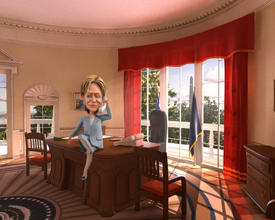 這段卡通片名為《動(dòng)畫(huà)人性》(Cartoon Personalities),是于15日在俄羅斯國(guó)家電視臺(tái)第一頻道播出的。這段動(dòng)畫(huà)生動(dòng)地展現(xiàn)了多位政治人物和明星的形象。片中,美國(guó)國(guó)務(wù)卿希拉里·克林頓一身天藍(lán)色套裝打扮,和平日里的著裝非常相似。不過(guò)希拉里卻是坐在白宮橢圓形辦公室的桌子上,一邊翹著二郎腿一邊打電話,面部表情還很?chē)?yán)肅。