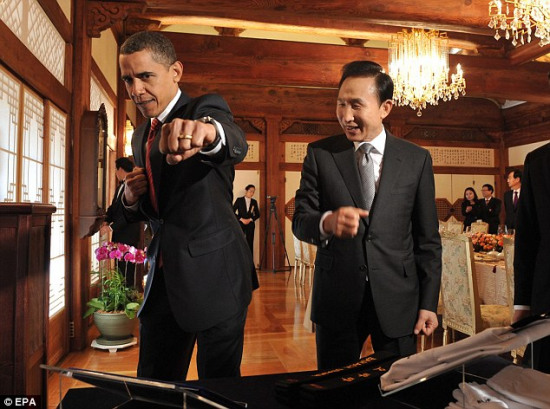據(jù)英國《每日郵報》報道,美國總統(tǒng)奧巴馬在籃球場上的颯爽英姿與舞池中的風流倜儻已經(jīng)有目共睹,但他還有很多絕活兒能讓世人為之傾倒。借著訪問韓國的大好時機,他向韓國總統(tǒng)李明博大秀跆拳道技術,博得滿堂喝彩。