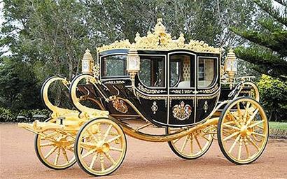 據(jù)報(bào)道,這輛奢華無(wú)比的“黃金婚車”名叫“不列顛尼婭(Brittania)”,由澳洲工匠弗萊.克林頓耗時(shí)6年打造。克林頓此前為英國(guó)女王伊麗莎白二世制造過(guò)多輛專屬馬車。這輛奢華的“黃金婚車”全車重達(dá)2.5噸,高3米,車身上裝飾有總計(jì)24顆鉆石、130顆藍(lán)寶石和超過(guò)400片金葉。車身上一百多塊木材分別取自倫敦塔、19世紀(jì)英國(guó)海軍名將納爾遜的“勝利號(hào)”戰(zhàn)艦以及16世紀(jì)亨利八世國(guó)王的“瑪麗.羅斯號(hào)”戰(zhàn)艦等重要王室建筑和文物,將是迄今為止英國(guó)最具有歷史意義的車輛之一。