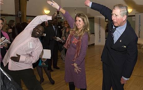 查爾斯王儲(chǔ)似乎對(duì)氣功很感興趣,氣功教練蓋伊·何教了他兩個(gè)簡(jiǎn)單動(dòng)作:先將右手舉到頭頂,手掌向上舉起,左手也做同樣的動(dòng)作,最后雙手重復(fù)這個(gè)動(dòng)作。蓋伊告訴他,想象自己手掌中正有一個(gè)能量球,但查爾斯的“能量球”掉下來兩次。“他的能量很好,他的精神力也很集中,但他需要一點(diǎn)兒技術(shù)。”查爾斯告訴另一位練習(xí)者說:“幾年前我的胳膊曾有兩處骨折,這讓我做起動(dòng)作來很難。”