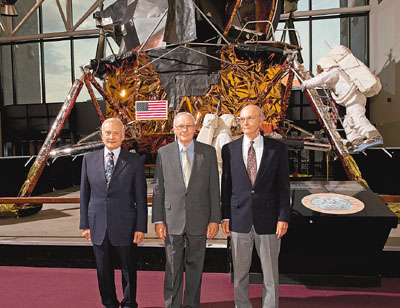 據(jù)香港《文匯報(bào)》報(bào)道,3位登月太空人現(xiàn)在都已年近80歲,以往他們很少共聚一堂,但在人類登陸月球40周年前夕,他們一同出席美國(guó)國(guó)家航空航天博物館舉行的一場(chǎng)特殊演講會(huì),并上臺(tái)發(fā)表講話,講述太空探索及“阿波羅11號(hào)”當(dāng)年的登月旅程。