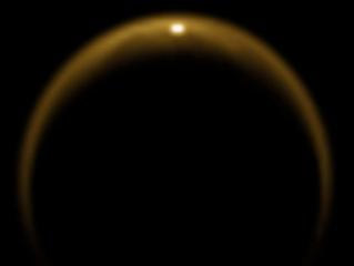 由于土衛(wèi)六上空厚厚的大氣層的干擾,土衛(wèi)六表面所反射的太陽光大多數(shù)都被遮蔽!翱ㄎ髂崽(hào)”探測(cè)器也是在偶然間拍下了這張罕見的照片。照片拍攝于2009年7月8日。