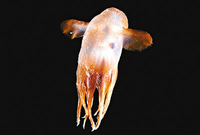 中新網(wǎng)11月24日電 由80個(gè)國(guó)家、逾2000名科學(xué)家進(jìn)行為期10年的海洋普查接近尾聲,科學(xué)家至今在深海已找到近1.8萬種海洋生物,其中包括一種章魚,長(zhǎng)有如象耳般的一對(duì)鰭,專家為它取名“大寶”,即迪士尼卡通《小飛象》的主角。