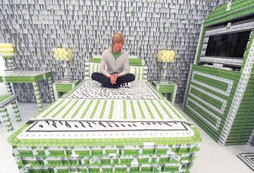 洲際酒店集團(tuán)為宣傳假日酒店的一家分店在翻新后重新開幕,委托伯格為在紐約建造這家“鎖匙卡酒店”。它已在17日開幕,只會經(jīng)營5天。全店只有一個(gè)睡房、一個(gè)浴室和一個(gè)大堂,面積只有約37平方米,重量只有兩噸。但它的賣點(diǎn)在于伯格那瘋狂的創(chuàng)意和手藝:店內(nèi)的睡床、接待處、桌椅……所有的家俬都是由酒店鎖匙卡搭成,體積與一般家俬無異。