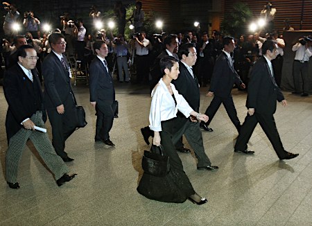 中新網(wǎng)6月9日電 當(dāng)?shù)貢r間8日,日本新首相菅直人組成新內(nèi)閣:前外務(wù)大臣岡田克也等11名閣僚留任,行政改革擔(dān)當(dāng)大臣蓮舫等3名閣僚為內(nèi)閣中的新人,前財(cái)務(wù)副大臣野田佳彥等兩名官員獲得升遷。