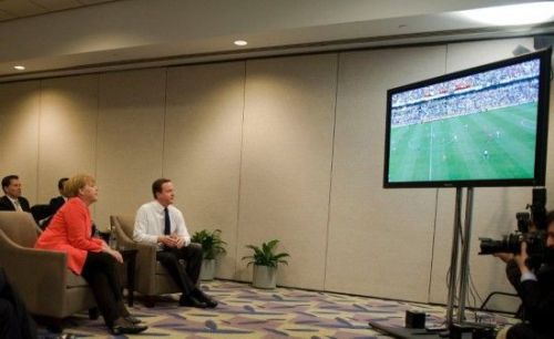 報(bào)道稱,卡梅倫和默克爾離開了其他與會(huì)領(lǐng)導(dǎo)人,與手下一同觀看英德下半場比賽。結(jié)果德國隊(duì)又進(jìn)兩球,以4-1大勝英格蘭隊(duì)。