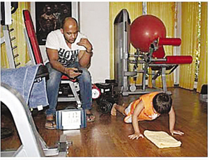 父母于是請來印度著名的私人健身教練薩特亞吉特·喬拉西亞對羅納克進行更為專業(yè)的體能訓(xùn)練。據(jù)悉,健身教練喬拉西亞專門負責訓(xùn)練印度的名人和演員。過去2年來,羅納克每周都會前往健身房訓(xùn)練數(shù)次,在健身教練喬拉西亞的指導(dǎo)下,利用啞鈴和杠鈴?fù)瓿筛鞣N高強度的器械練習。最折磨人的是,每次訓(xùn)練時,健身教練喬拉西亞還會拿著一塊秒表掐算時間,督促羅納克在最短時間內(nèi)做成百上千個俯臥撐,以此增加他的體能和耐力。在跟隨健身教練喬拉西亞進行了2年“魔鬼訓(xùn)練”后,羅納克將自己鍛煉成了一個擁有結(jié)實肌肉和驚人力量的“大力士”。日前,羅納克竟在短短40分鐘時間里,一口氣接連做了多達1500個俯臥撐,從而創(chuàng)下了一項新的印度全國紀錄!當羅納克完成這一壯舉的錄像片段在網(wǎng)上曝光之后,許多人都看得目瞪口呆,無法相信自己的眼睛。