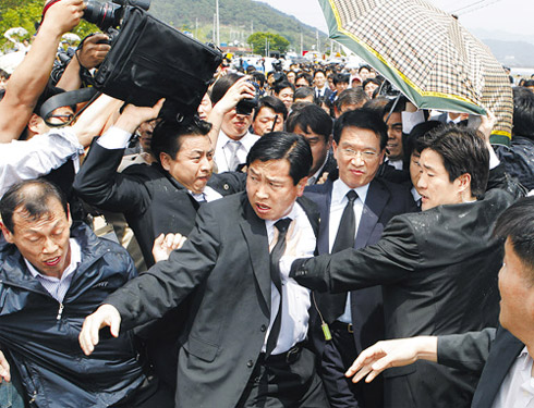 此外,鄭東泳議員夫婦也只能打道回府。“盧愛會(huì)”會(huì)員和村民們對(duì)走向村子入口的鄭議員大喊“叛徒”,并阻止他們吊唁。被攔住去路的鄭議員也只能返回。