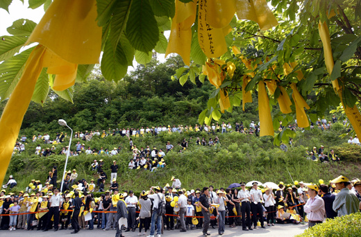 中新網(wǎng)5月29日電 據(jù)韓國《朝鮮日報(bào)》報(bào)道,當(dāng)?shù)貢r(shí)間29日下午6時(shí)8分(北京時(shí)間下午5時(shí)8分),韓國前總統(tǒng)盧武鉉的靈車來到位于水原的“蓮花場”(音譯)火化場。現(xiàn)場已被象征盧武鉉的黃色帶子“覆蓋”,700多名警察部署在火化場,嚴(yán)格控制一般人出入。