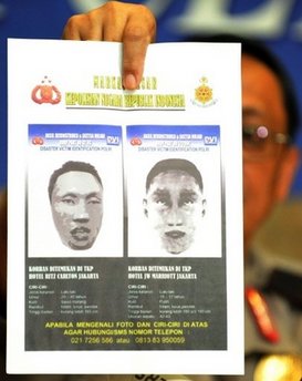 中新網(wǎng)7月22日電 綜合外電消息,印尼警方22日公布了上周豪華酒店爆炸案中兩名自殺式襲擊者的面部合成照片。