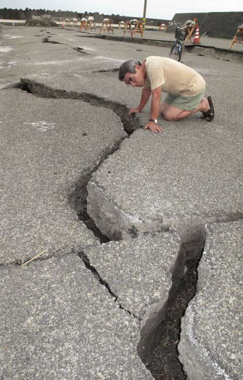 在燒津港的碼頭上,地震后出現(xiàn)了一條300米長的裂痕。燒津港某漁業(yè)合作社的官員說:“這次地震和海嘯預(yù)警實(shí)在令人害怕。今天的事讓我們?yōu)檎嬲拇鬄?zāi)難進(jìn)行演習(xí)。”