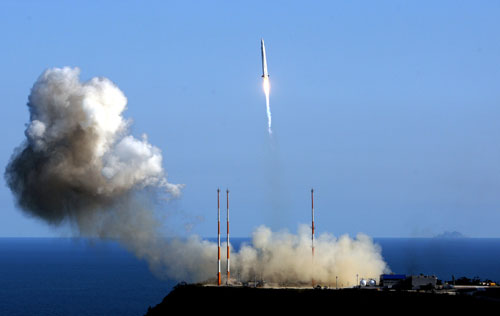 中新網(wǎng)8月25日電 綜合報(bào)道,韓國(guó)首枚運(yùn)載火箭“羅老”號(hào)(KSLV-I)在當(dāng)?shù)貢r(shí)間25日下午5時(shí)發(fā)射升空,數(shù)分鐘后韓國(guó)羅老衛(wèi)星發(fā)射中心宣布“羅老”號(hào)發(fā)射初步成功,捏著一把汗注視倒計(jì)時(shí)牌的市民歡呼雀躍。韓國(guó)總理韓升洙也通過電視對(duì)火箭發(fā)射的初步成功表示祝賀。但距離火箭發(fā)射約70分鐘后,韓國(guó)當(dāng)局宣布“羅老”號(hào)未能進(jìn)入目標(biāo)軌道,發(fā)射未能取得100%成功。