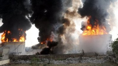 當(dāng)?shù)仉娨暸_(tái)援引國(guó)營(yíng)石油公司市場(chǎng)營(yíng)銷經(jīng)理達(dá)加表示,至今天凌晨,油庫(kù)大火仍然猛烈燃燒,傷亡人數(shù)可能還會(huì)增加。達(dá)加表示,爆炸起火原因可能是其中一座油庫(kù)的輸送閥故障,導(dǎo)致在輸送過程中漏油起火爆炸。
