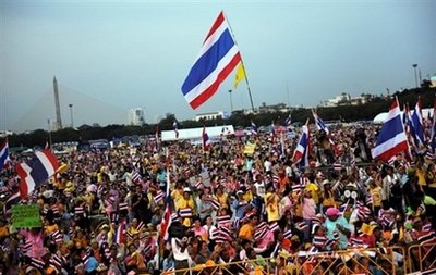 中新網(wǎng)11月16日電 據(jù)新加坡《聯(lián)合早報(bào)》援引外電報(bào)道,泰國“黃衫軍”大約2萬名成員15日傍晚在曼谷皇家田廣場聚集,抗議前首相他信到柬埔寨訪問,以及他信接受英國《泰晤士報(bào)》訪問時(shí)冒犯泰王蒲眉蓬的言論。