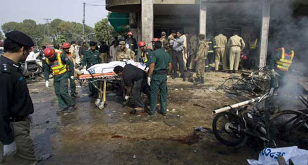 拉瓦爾品第是巴基斯坦軍事重鎮(zhèn),距首都伊斯蘭堡只有14公里。這座城市在過去2個(gè)月里曾兩度遭遇恐怖襲擊。10月10日,數(shù)名武裝分子喬裝成士兵,闖入陸軍司令部大樓發(fā)動襲擊,綁架了數(shù)名人質(zhì),和巴安全部隊(duì)對峙22個(gè)小時(shí),最后有9名武裝分子和14名軍民被打死。11月2日,陸軍司令部大樓附近的的一座臨街酒店發(fā)生爆炸,造成35人死亡。