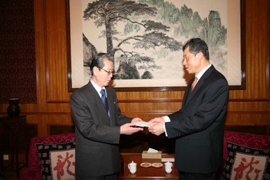 劉曉明大使首先請崔泰福轉(zhuǎn)交中共中央總書記胡錦濤致朝鮮勞動黨總書記金正日的新年賀卡。崔泰福表示感謝,并允向金正日總書記轉(zhuǎn)交。