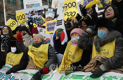中新網(wǎng)1月13日電 韓國挺身隊(duì)問題對策協(xié)會(以下簡稱挺身隊(duì)協(xié)議會)13日下午12點(diǎn)在日本駐韓國大使館前舉行了第900次周三集會。